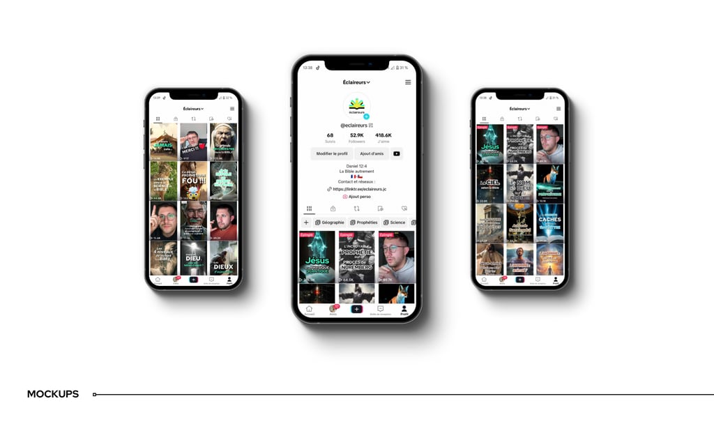 Je produis des vidéos Tiktok sur le thème de la Bible : ses mystères, son sens profond, j'explique à ma manière ce que peu de gens savent à son sujet. Tournage, montage, identité visuelle, compte Instagram dérivé... Ce projet est mon bébé : je l'ai conçu de A à Z !