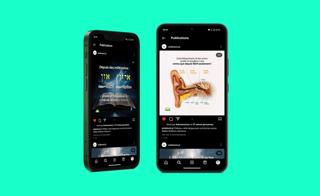 Je m'occupe également du compte Instagram, où je republie mes vidéos Tiktok sous forme de Reels, et je publie également des citations, des faits inspirants ou encore des explications bibliques profondes.