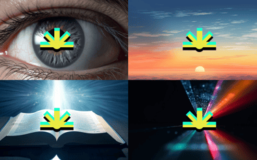 Ce logo représente plusieurs choses : Une Bible ouverte, un soleil se levant à l'horizon, un œil schématisé (avec les cils) ainsi que le principe de la diffraction de la lumière. J'ai repris des codes stylistiques actuels, qui rappellent les identités simples et concises de certains médias sur Internet, avec des couleurs flashys qui attirent l'attention.