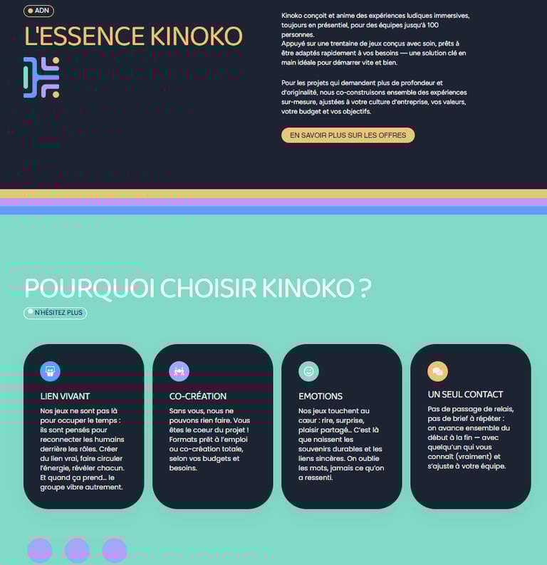 Kinoko conçoit et anime des expériences ludiques immersives, toujours en présentiel, pour des équipes de professionnels, jusqu’à 100 personnes.