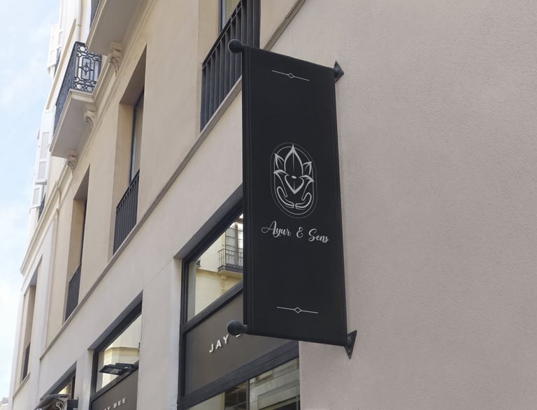 Cet élégant logo combine harmonieusement une délicate fleur de lotus, symbole de pureté et de renouveau, avec des mains tendres et bienveillantes, représentant les soins ayurvédiques, tout en représentant les feuilles inférieures. L'illustration évoque la grâce et l'équilibre, capturant l'essence des pratiques ayurvédiques.