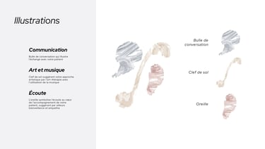 Oreille : Écoute : "symbolise l’écoute au cœur de l’accompagnement de votre patient, suggérant par ailleurs bienveillance et empathie".