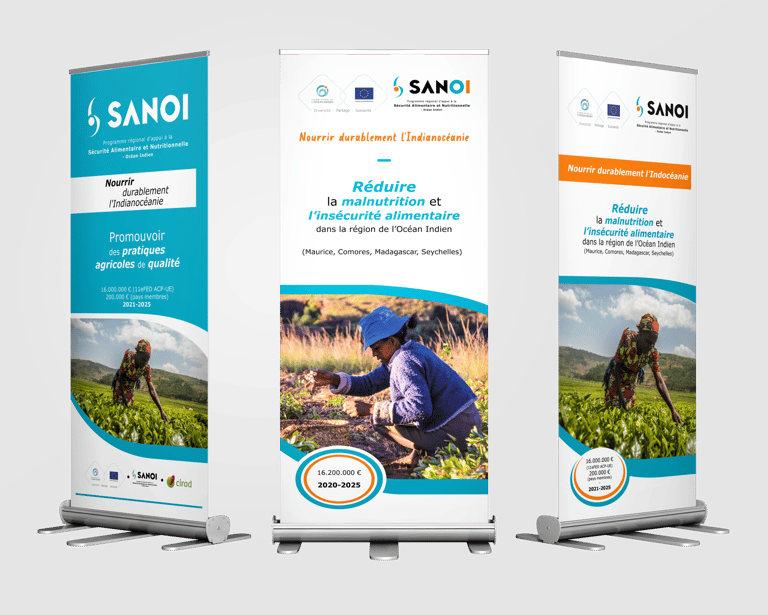 L'Union Européenne finance chaque années de nombreux programmes permettant le développement de pays en voie de développement. Ces programmes nécessitent des identités visuelles et des supports de communication dans lesquels j'interviens parfois, en collaboration avec une chargée de communication.
